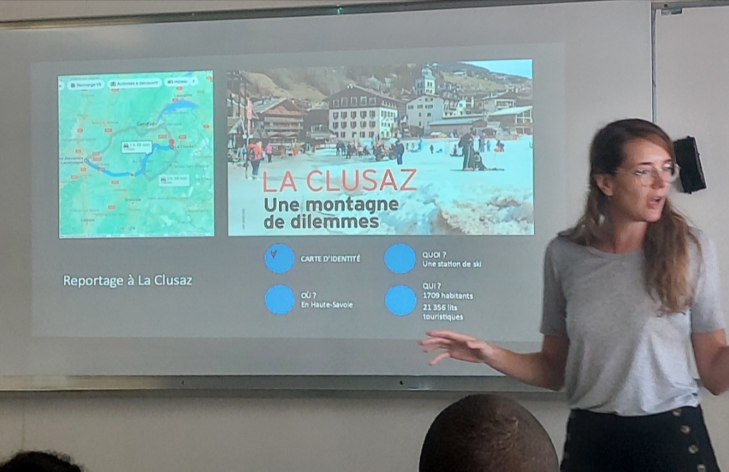 Les élèves ont d'abord suivi un cours de géographie de Mme Arsac sur la notion de ruralité et conflits d'usage. Puis ils ont travaillé pendant une séance au CDI, avec Mme Douville professeur documentaliste, pour effectuer des recherches sur la thématique de "La difficile mais nécessaire transition du tourisme vers plus de responsabilité sociale et environnementale." Un sujet qui fait écho aux programmes scolaires de la classe de première.